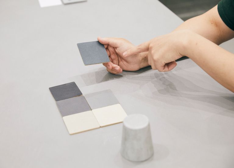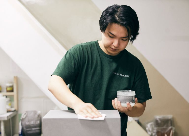 - 内装工として勤務時代に、「モールテックス」というコンクリートの新素材に出合い、アイデアがひらめく